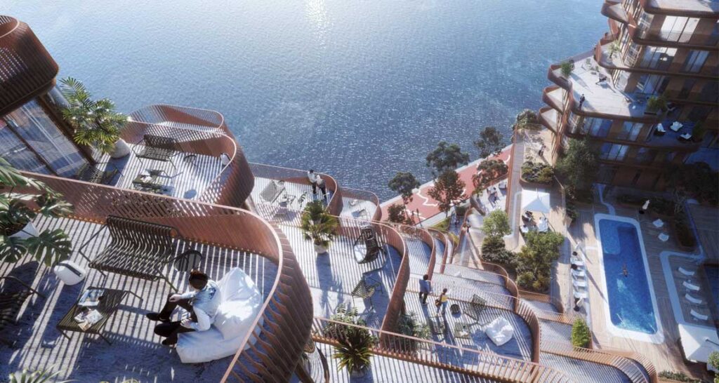 At Aqualuna, the living space extends to the balcony and terrace. Expansive floor-to-ceiling windows make the most of natural light streaming in, while the extraordinary outdoor space is ideal for relaxation or entertainment.