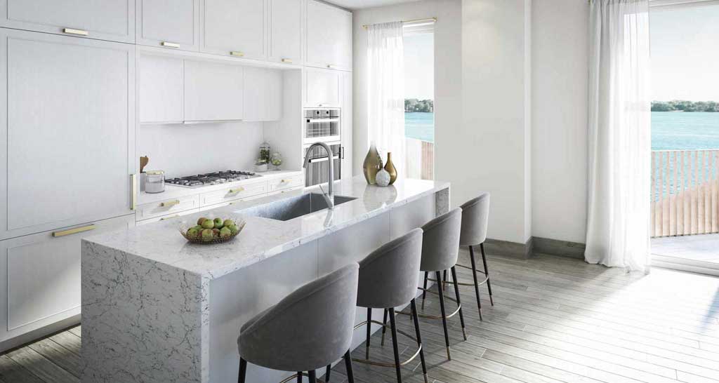 The finest details having been carefully considered, each suite greets you with a unique warmth and character. From the use of natural stone, porcelain and designer cabinetry in the kitchens and bathrooms, to contemporary finishes and ample storage space, the residences at Aqualuna pull together luxury, comfort and convenience.