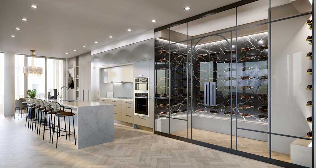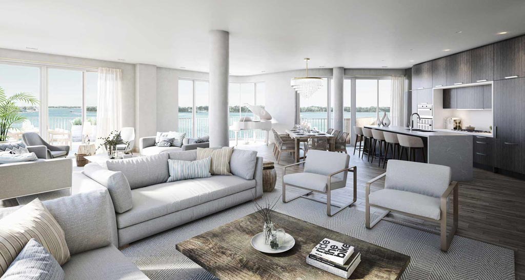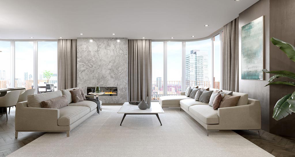 The residences have been designed to complement the architecture. Airy and bright, the spacious, open-concept floorplans offer seamless flow through the interiors. With luxury hardwood flooring and modern lighting, state-of-the-art appliances and smart home technology, the features all integrate to create a heightened sense of opulence.