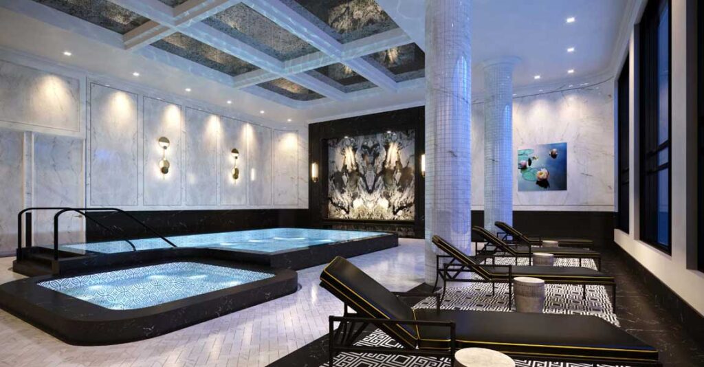 The outdoor English Garden is a secluded enclave where you can spend sunny afternoons and cool evenings. And on the eighth floor, you can find a private outdoor kitchen with open-air dining and lounge areas, all decorated with the finest materials and furniture.