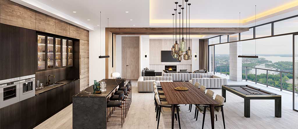 Spa-inspired bathrooms. Smooth finish ceilings. Integrated appliances. Bright clear walls for art. Or for your big screen addiction. And then, there are the views. Bold dazzling lake and city views. This is it. This is the place where your days begin and evenings end.